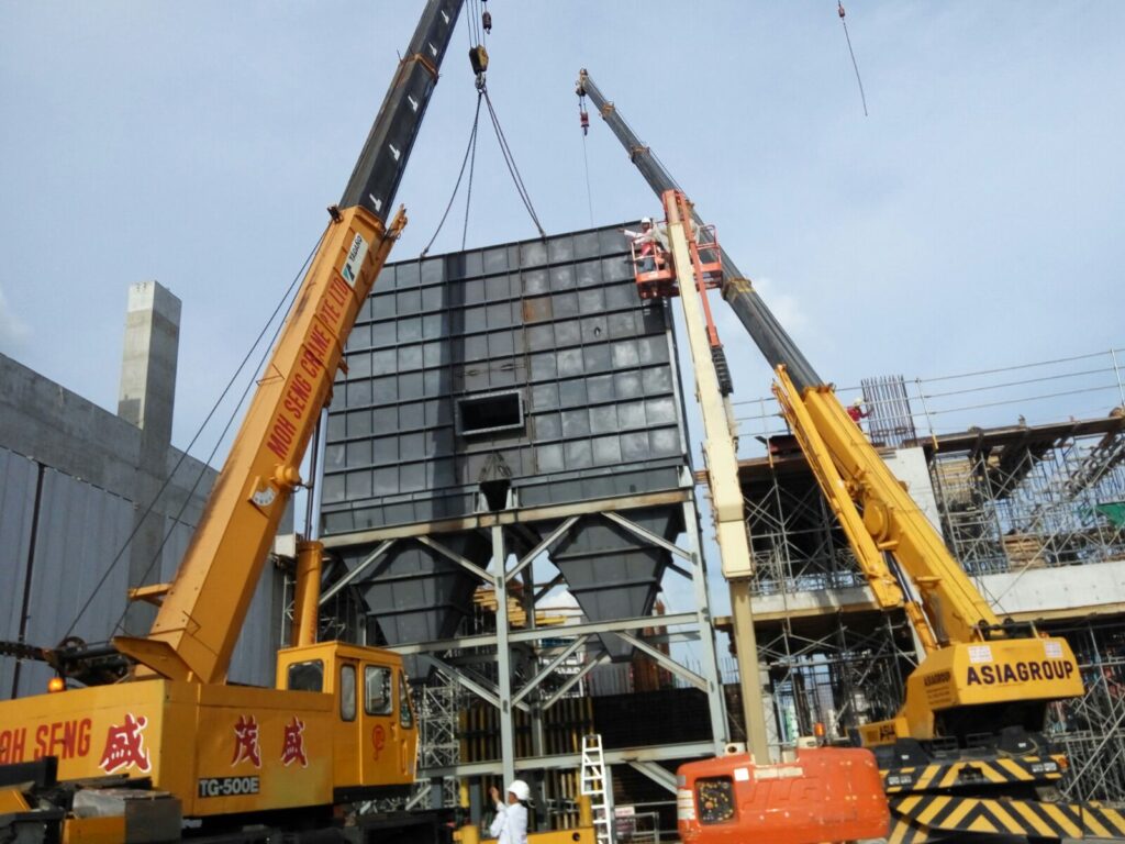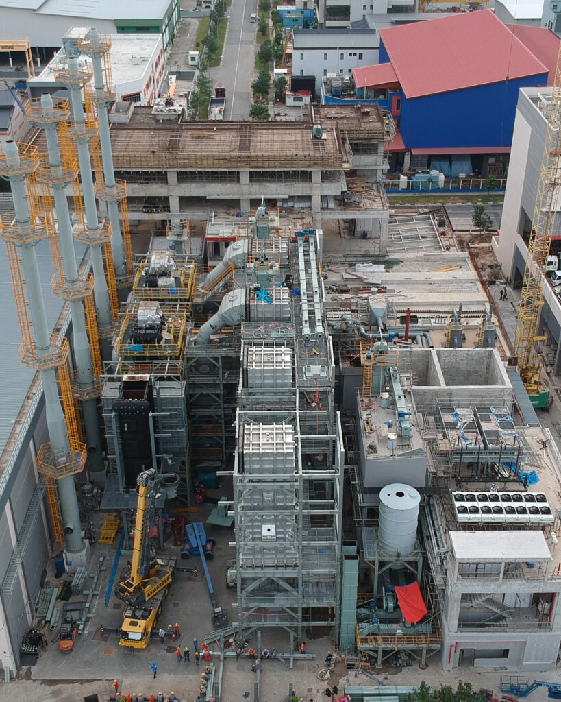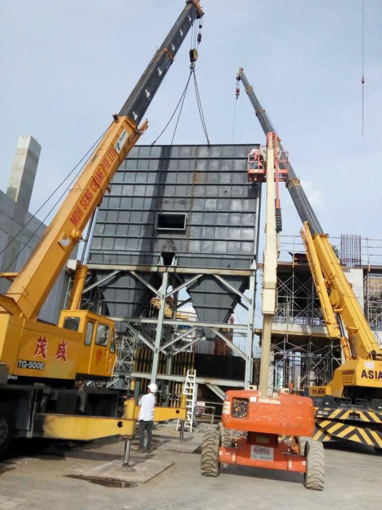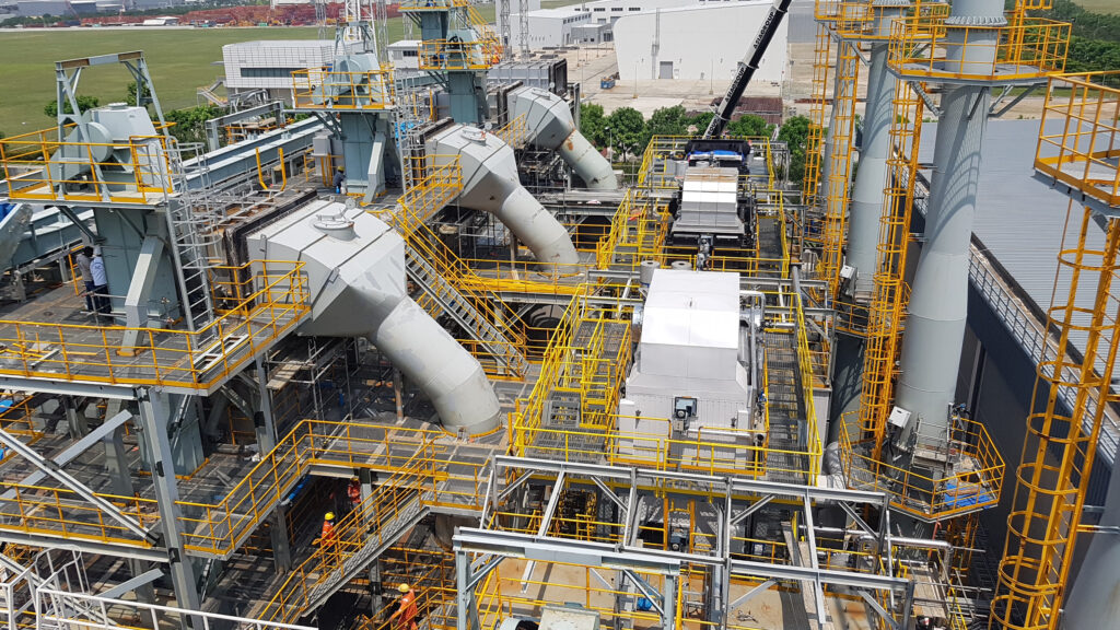 Scope of Work: Erection and installation of burner package, BOP, incinerator, gas air heat exchanger (GAH), boiler (evaporator and economizer), chimney, storage tank, slug conveyor, sand circulation system, sodium bicarbonate storage and feeding system, active carbon common system, wet sludge receiving and feeding system, plume prevention system, radiator, fly ash transfer conveyor, deodorant system, induced draft fan, bag filter, silo and mechanical equipments including steel structure, piping and ductwork, quantity 4 units